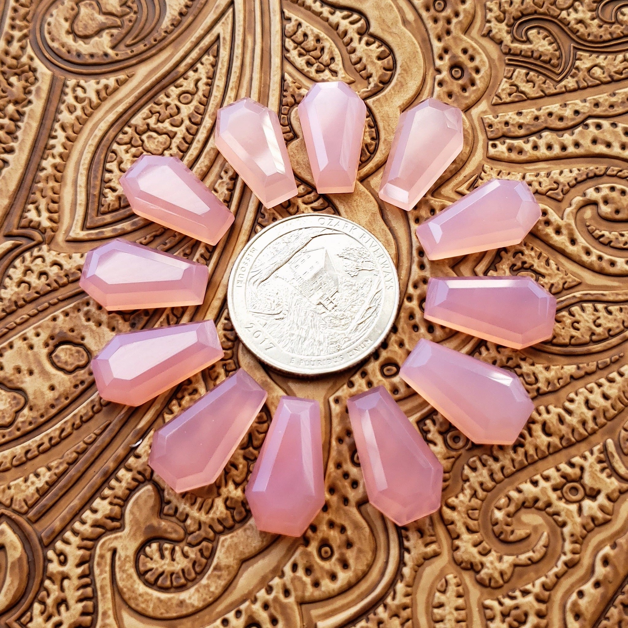 ONE Pink Chalcedony coffin cab. Approximately 10x17mm. If you need more, you can add more than one listing/lot to your cart.